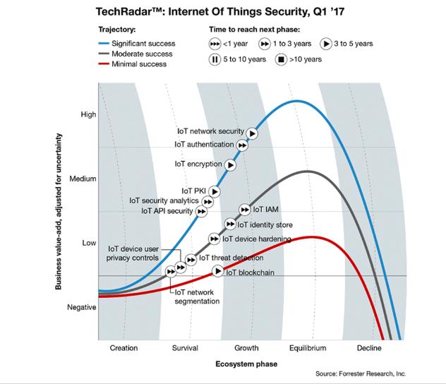最近,Forrester TechRadar 研究了使 IoT 嵌入式设备变得更安全的可能举措。该研究定义了 IoT 安全的使用情形和商业价值,并展望了 13 个最相关的、最重要的 IoT 安全技术。除了 IoT 威胁检测、IoT 块环链、IoT 安全分析等比较新兴的 IoT 安全技术之外,该研究还包括 IoT 授权、IoT 加密等比较核心的技术。